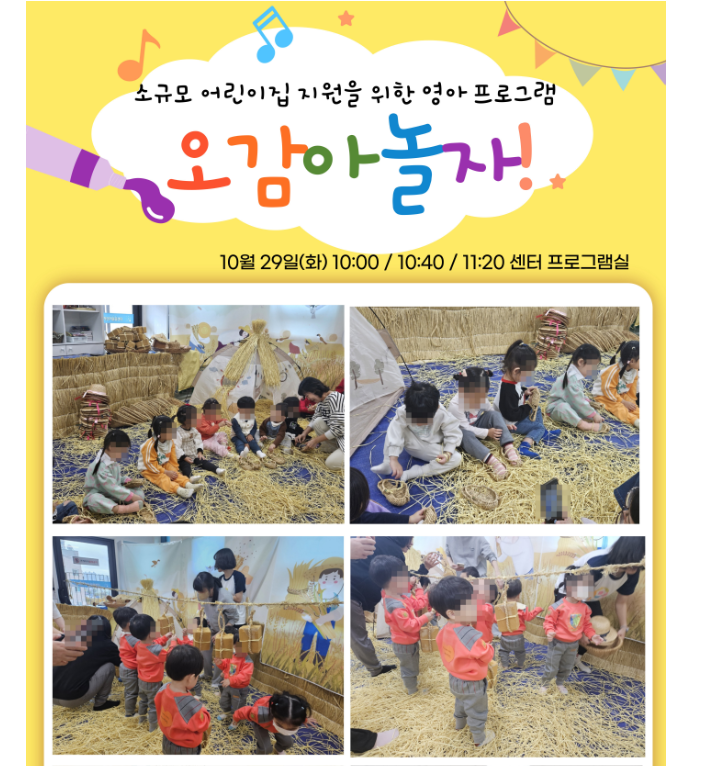- 아이사랑꿈터 이벤트 및 프로그램 활용해서 아이와 즐거운 추억 간직하세요.